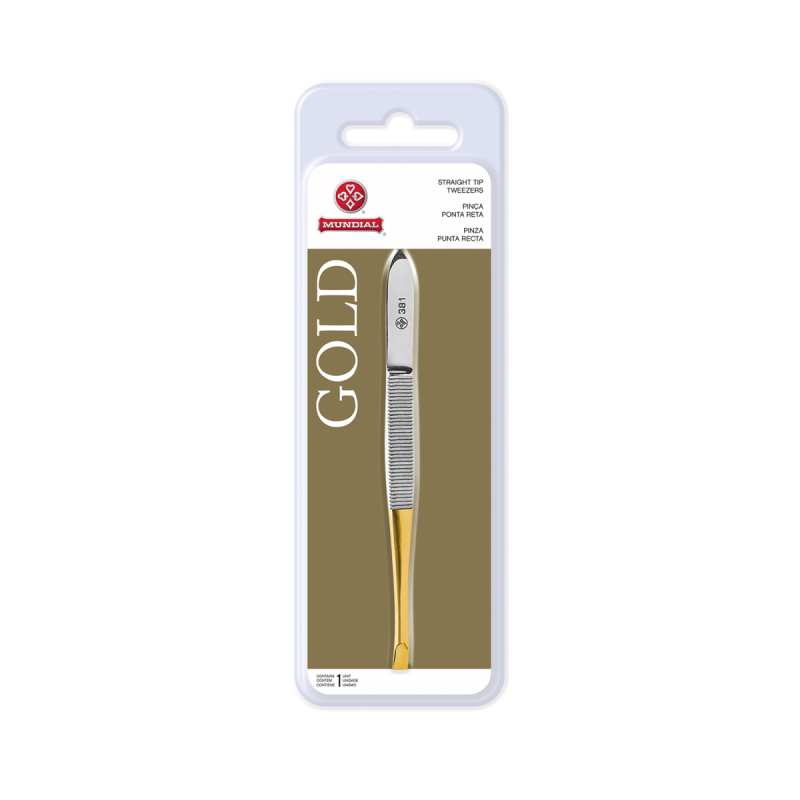 O modelo 381P possui ponta reta dourada para retirada de pelos longos e médios, além de auxiliar na finalização do design de sobrancelha. Seu cabo é texturizado para maior segurança e firmeza!