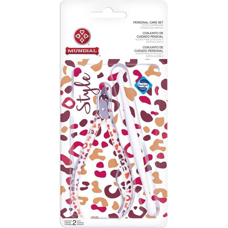 Alicate de Cutícula Mundial Estampado + Espátula Ref.758